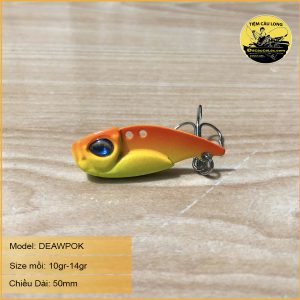 Mồi cá giả Deawpok thiết kế bằng kim loại, mồi có body nhỏ gọn chỉ 50mm, sử dụng 1 lưỡi, đóng cá rất là tốt khi cá táp vào đóng dính sâu chắc chắn giúp anh em cần thủ có thể yên tâm cá không thể nào mà tuột ra.