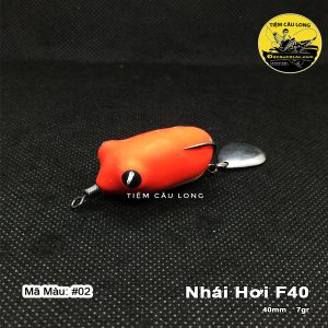 Mồi Nhái Hơi TNT F40 có Action Nổi, thương hiệu của người Việt Nam sản xuất, chất lượng body cao su tốt, lưỡi cứng bén đóng cá dễ dàng, sử dụng được mọi địa hình nước trên khắp nước Việt Nam, thích hợp mồi câu cá lóc